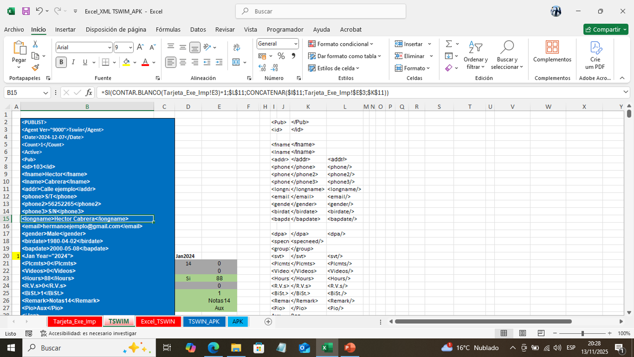 Nota: las hojas Excel_TSWIN, y APK; son para ingresar datos desde TSWIN a la APK Secretario de la Congregación