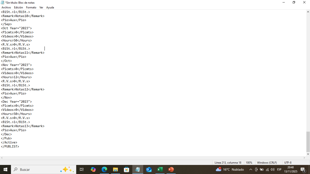En esta hoja copiamos los datos desde <PUBLIST> hasta </PUBLIST> para crear un archivo XML.