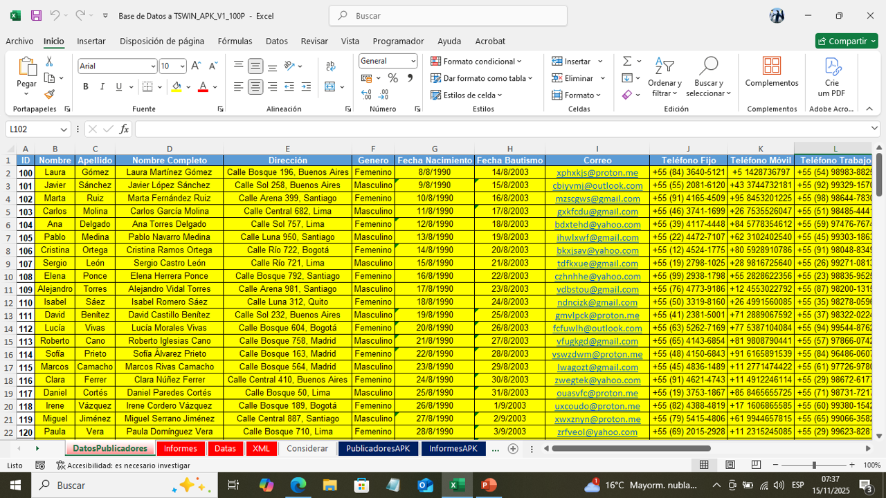 Con la ajuda de IA, se creo una congregación ficticia de 100 publicadores con el objetivo de mostrar el funcionamiento de TSWIN o ayudar a quienes no tienen mucha experiencia