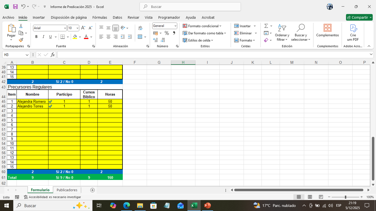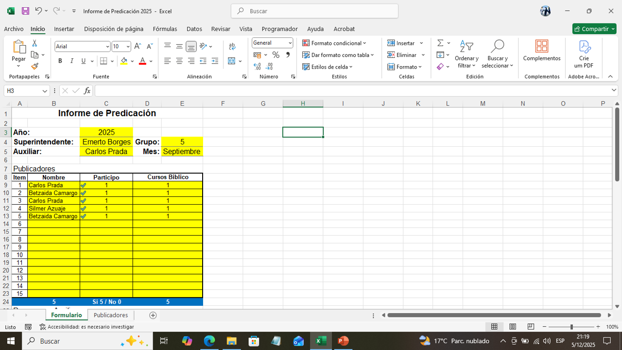 El archivo Informe de Predicación 2025, funciona de la siguiente manera.