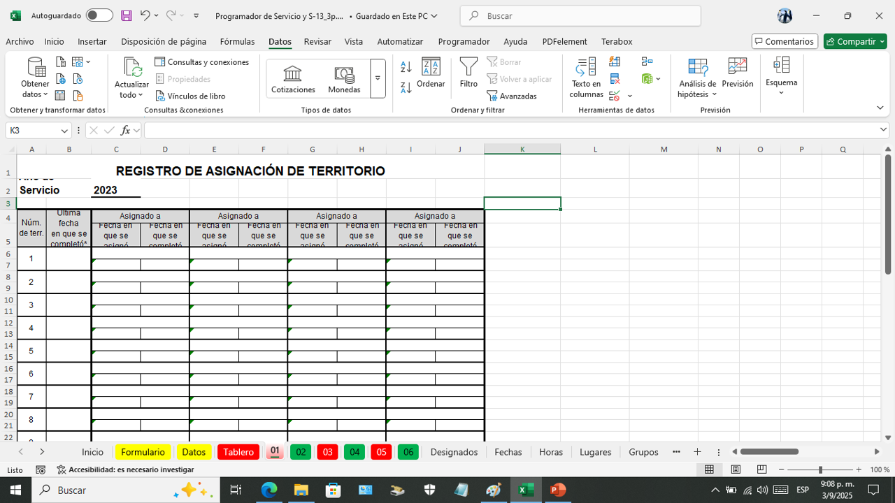 Es la hoja que vamos a imprimir para colocar en el tablero de la congregación
